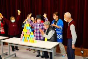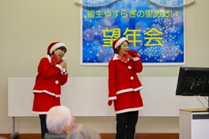 この日は望年会を行いました。今年の出来事にまつわるクイズやゲーム、演芸披露などで楽しんでいただきました。
