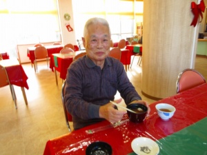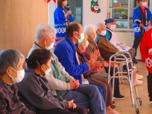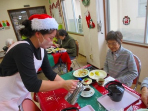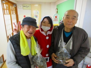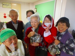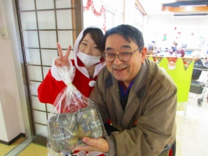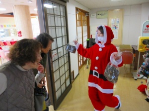 食事の後は、サンタがちょこっとプレゼントを入居の皆様へお渡し♪皆様からは笑顔をいただきました(*^▽^*)